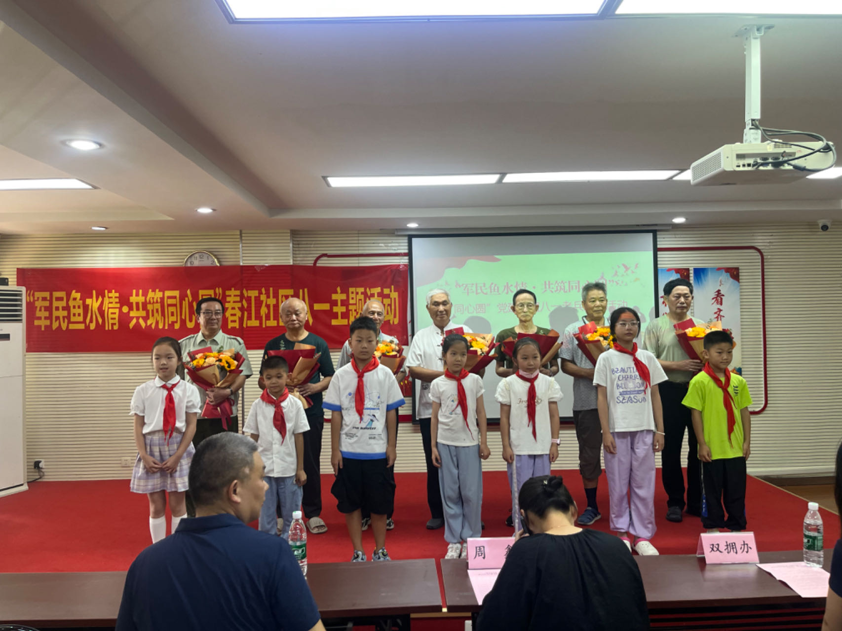 活動開始,社區(qū)黨委書記周鑫發(fā)表開場致辭,少先隊(duì)員向老兵獻(xiàn)上鮮花,分享寄語,向老兵致以節(jié)日的祝賀和崇高的敬意,隨后,三名老兵代表分別分享了他們在軍旅生涯中的難忘經(jīng)歷和感人故事,話語打動了在場的每一位觀眾。社區(qū)代表和樓棟長們紛紛表示要銘記功勛,致敬老兵。活動在居民獻(xiàn)唱《我和我的祖國》的歌聲中以及合影留念中落下帷幕。
