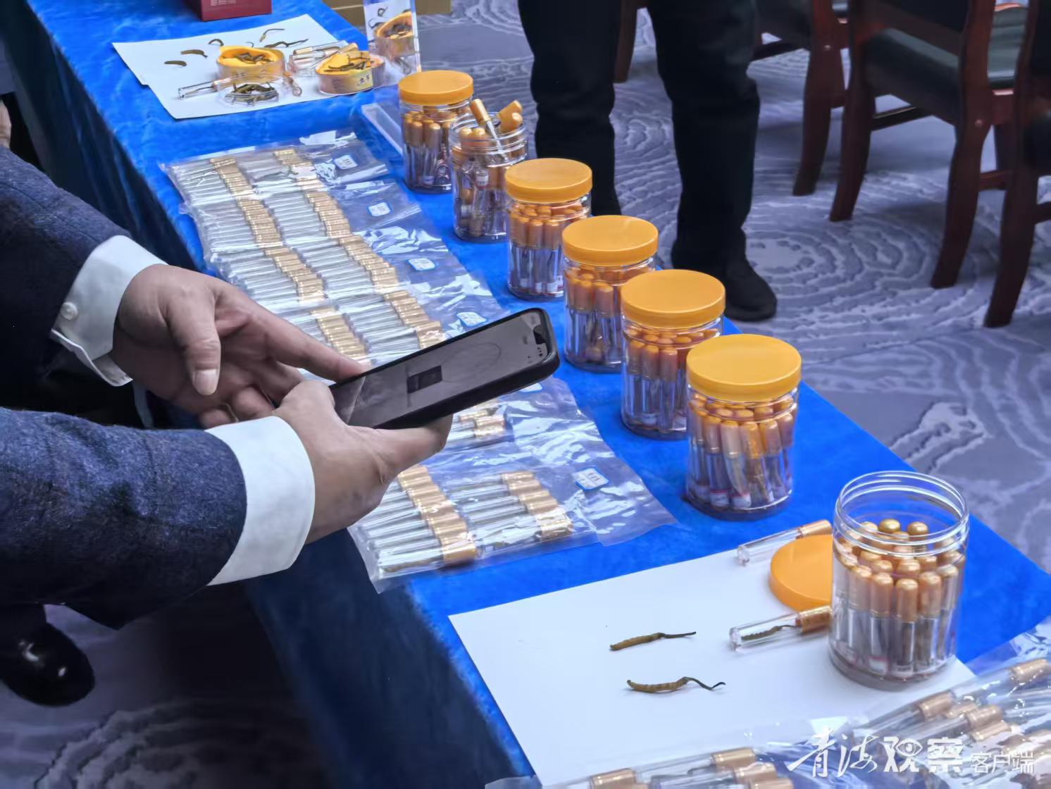 用微信小程序掃碼鑒真蟲草真假。青海日報融媒體記者 羅珺