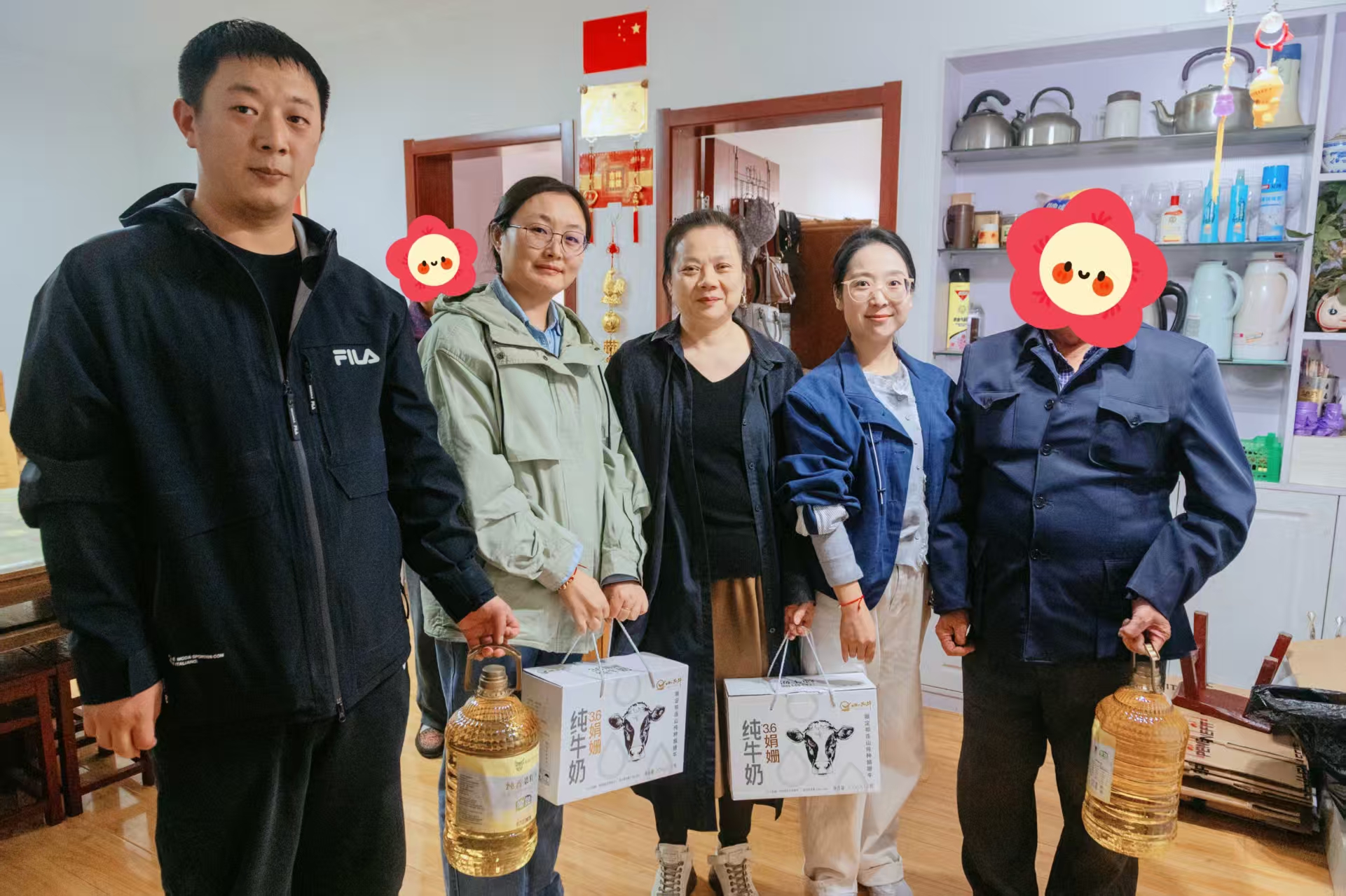 活動特別設置轄區高齡、獨居等特殊困難老人慰問環節,新立訊黨支部代表聯動社區工作人員上門詳細了解了社區兩家老黨員代表的健康狀況、家庭生活情況以及目前所面臨的實際困難,并送上青海助農產品娟姍奶、菜籽油,并致以節日問候。