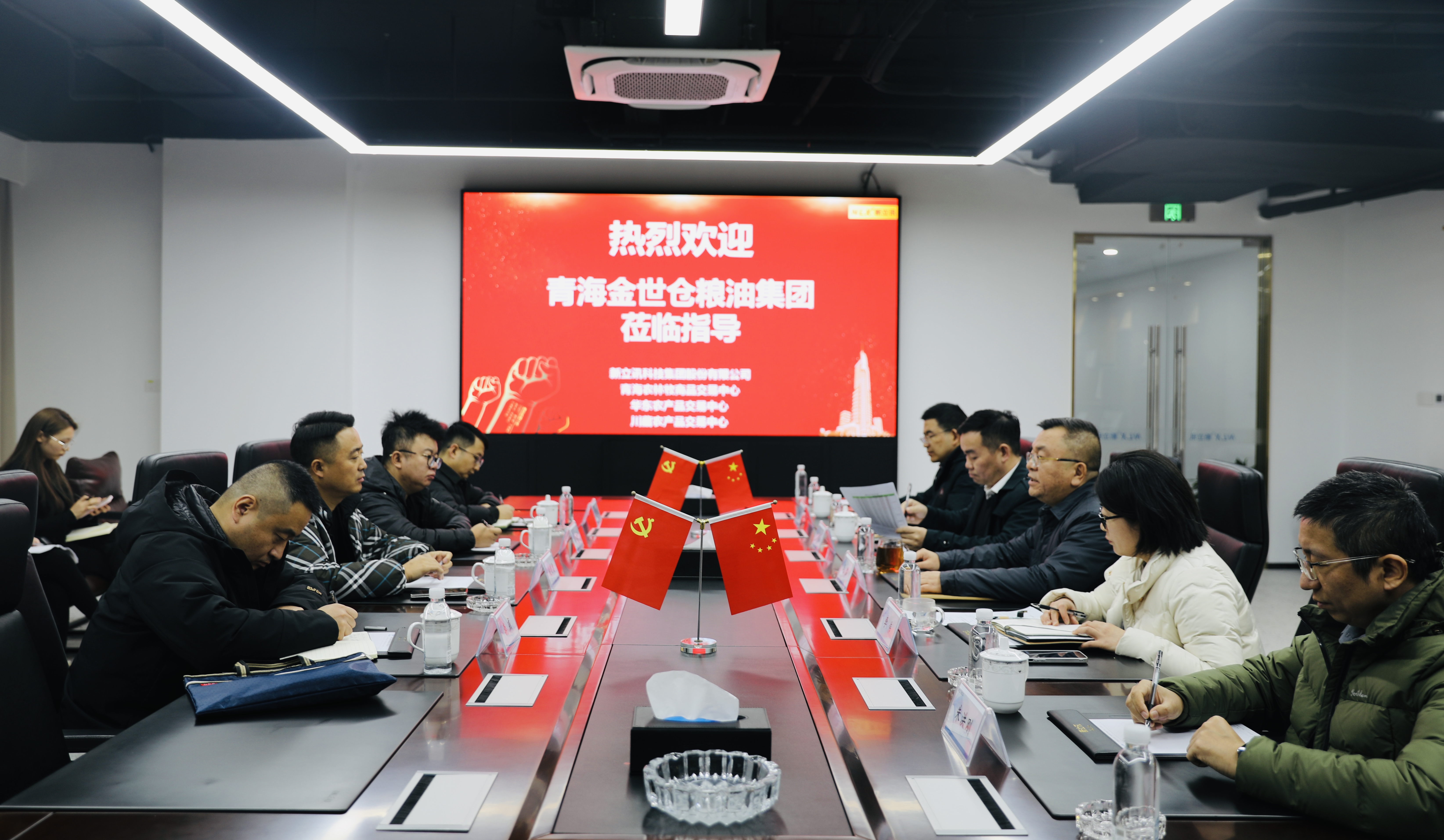 2026年1月25日,青海金世倉糧油集團董事長趙明德攜集團常務(wù)副總經(jīng)理李威、財務(wù)總監(jiān)李忠皓、銷售總經(jīng)理湯曉東一行蒞臨新立訊科技集團總部調(diào)研。新立訊科技集團董事長(兼青海、華東、川藏農(nóng)產(chǎn)品交易中心董事長)毛霖、常務(wù)副總經(jīng)理李偉、董事長助理(兼農(nóng)聯(lián)網(wǎng)絡(luò)總經(jīng)理、青海華東交易中心副總經(jīng)理)楊慶慶及集團財務(wù)、風控負責人與農(nóng)產(chǎn)業(yè)互聯(lián)網(wǎng)相關(guān)負責人等陪同調(diào)研并座談。