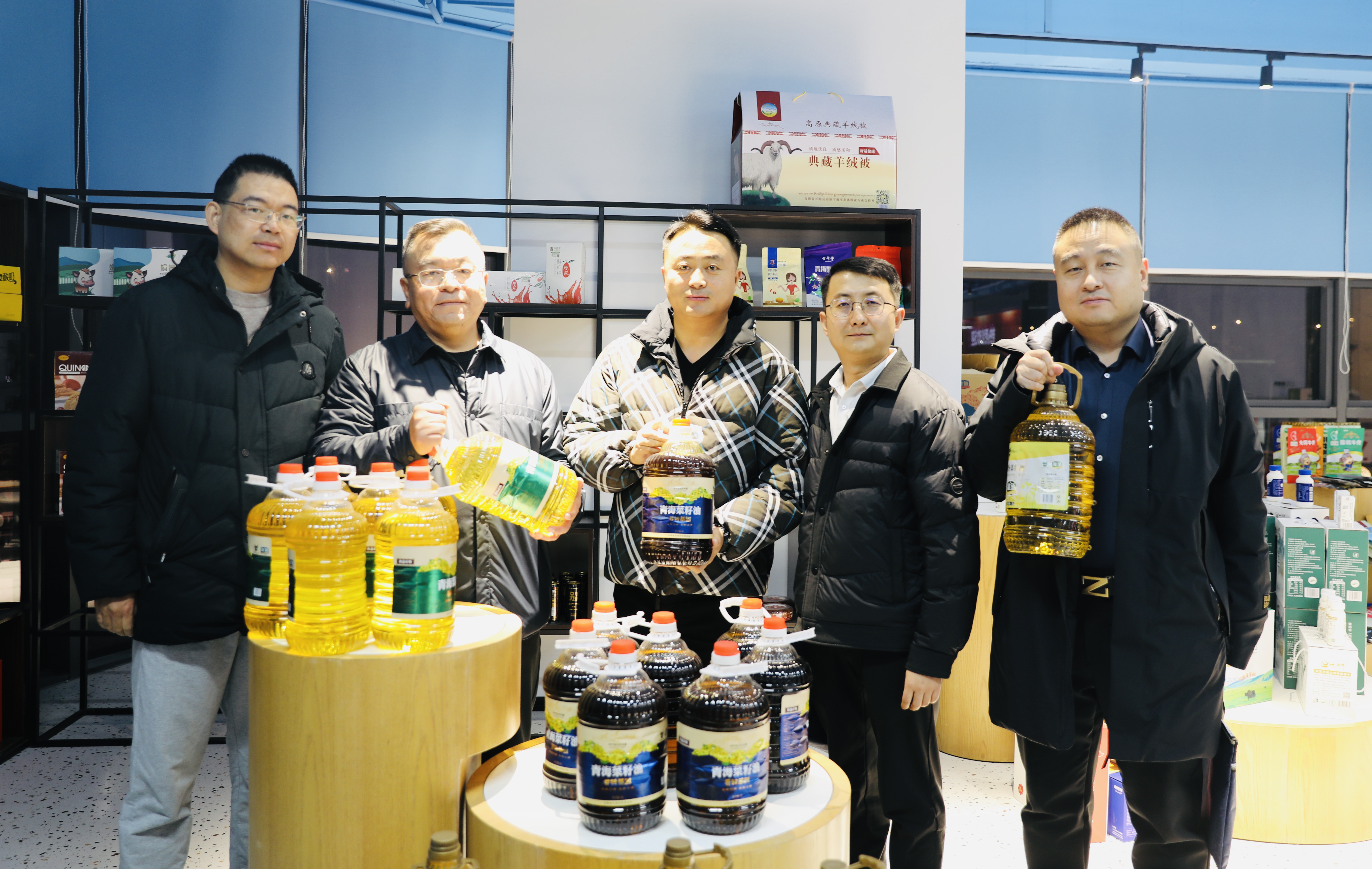 座談結(jié)束后,集體參觀了金世倉位于12樓、目前處于裝修階段的辦公場所和位于新立訊總部一層正在籌建的“東西部(蘇青)協(xié)作農(nóng)產(chǎn)品展銷中心”,展示了青海“青品好物+西部優(yōu)選”系列產(chǎn)品:藍雀山、羊羔花、牦牛肉、藏羊肉、湟魚菜籽油、鎖鮮枸杞、雪山牦牛奶、青海湖純牛奶、冬蟲夏草等高原特色農(nóng)產(chǎn),在“東產(chǎn)西送 西產(chǎn)入東”農(nóng)產(chǎn)交易數(shù)字大屏上,實時顯示青海、華東、川藏農(nóng)產(chǎn)交易中心農(nóng)產(chǎn)交易實時數(shù)據(jù)信息。