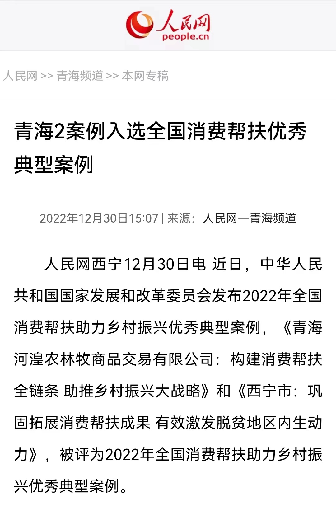 喜報(bào) | 青海農(nóng)林牧商品交易中心入選國(guó)家發(fā)改委 2022年全國(guó)消費(fèi)幫扶助力鄉(xiāng)村振興優(yōu)秀典型案例