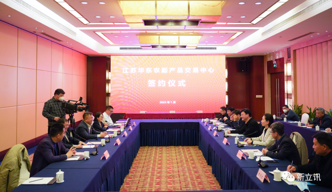2023年1月10日,“江蘇華東農(nóng)副產(chǎn)品交易中心簽約儀式”在江蘇鹽城市鹽都區(qū)驛都金陵大酒店隆重舉行。鹽都區(qū)委副書記、區(qū)長馬正華,鹽城市供銷合作總社黨委書記、理事會主任朱雯,鹽都區(qū)委副書記、副區(qū)長朱偉,新立訊董事長(兼青海農(nóng)林牧商品交易中心董事長)毛霖,鹽城市供銷合作總社黨委委員、理事會副主任沙附生,鹽都區(qū)農(nóng)業(yè)農(nóng)村局、區(qū)供銷社、區(qū)國控集團等相關(guān)負(fù)責(zé)同志共同出席簽約儀式。