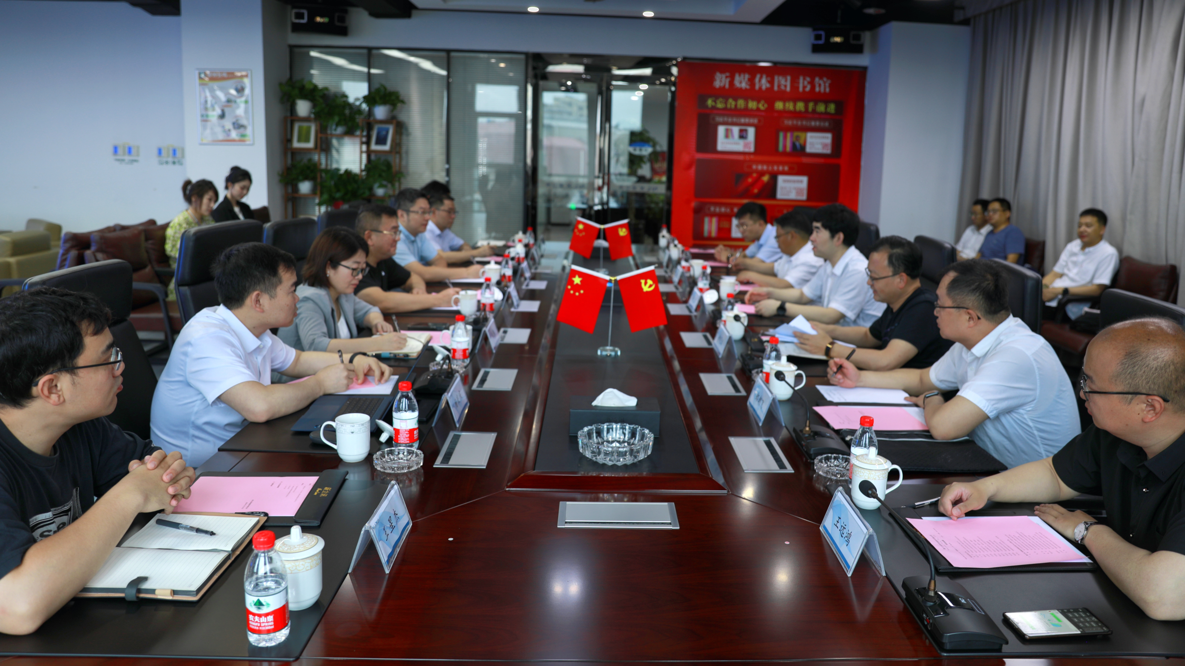 2023年6月18日,青海工信廳副廳長靳力,青海工信廳數字經濟發展局局長楊守文,果洛州工信局局長巴松等領導一行蒞臨新立訊總部調研,新立訊董事長毛霖,首席科學家張帆教授及在家公司領導層陪同調研。